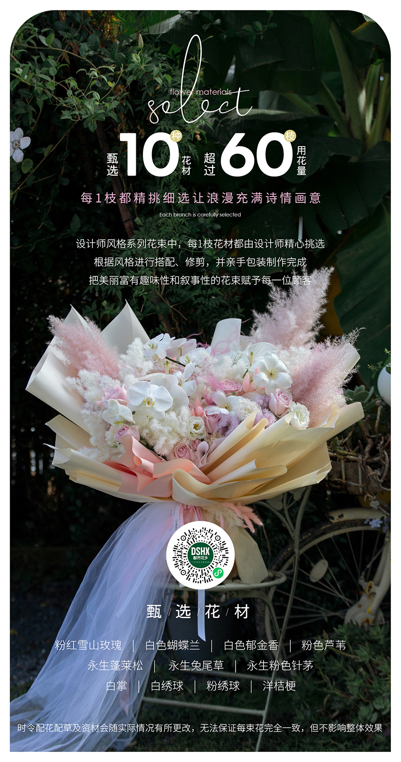 注:時令配花配草及資材會隨實際情況有所更改,無法保證每束花與圖片完全一致,但不影響整體效果。